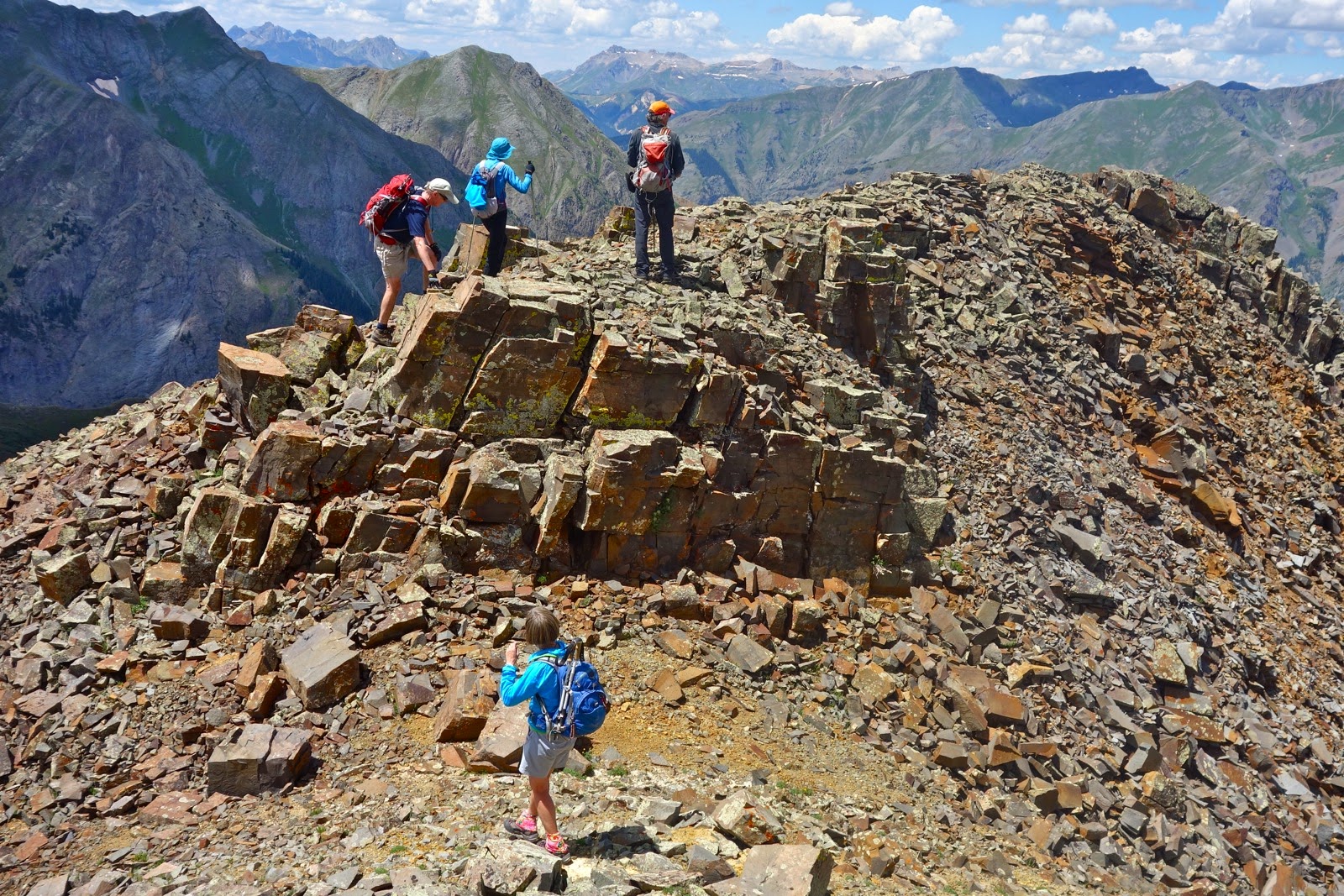Route: Beginning at 11,700 feet, walk generally southeast up the dirt road to the Buffalo Boy Mine. Angle up to the ridge and go north-northwest to Galena Mountain. Returning, stay on the ridgetop to Point 13,214'. Go out-and-back to Canby Mountain. Back on Pt 13,214', go northwest on the ridge dividing Stony Gulch from Rocky Gulch. Peel off the ridge to meet the road and walk a short distance back to the start.