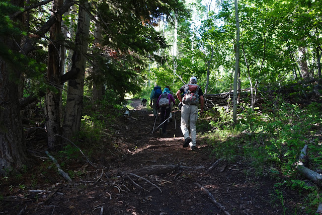 The path, now a hunter's trail, is a great assist as it switchbacks up the lower flanks of the broad ridge. Enter the forest and climb steeply.