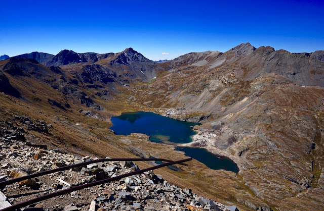 At 9.1 miles, the Pass Creek Trail comes in from the east and terminates at the Engineer Mountain Trail at 11,680 feet. This is the 2.5 mile blue-line route on the map above. The segment hike from Coal Bank Pass to the Engineer Mountain Guard Station is a local's favorite but does require a shuttle. This juncture is the launch point for the Engineer Mountain, 12,968', climb. Here is the one place on the circuit solitude will likely be broken. Mid-summer, a walk up the Pass Creek Trail to look at the outrageous flowers in Engineer Meadows is a popular half-day outing. (Chris Blackshear, photo)