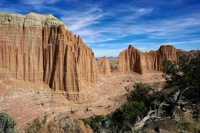 Essence: A short hike to a viewpoint looking out over Cathedral Mountain and a string of monoliths in Upper Cathedral Valley.